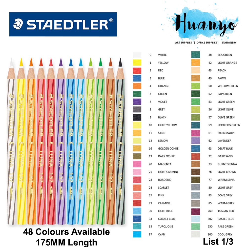 Staedtler Luna Watercolour Pencils, 48 Shades || Unboxing and Review - 48 Shades Staedtler Colored Pencils 48 Color Chart